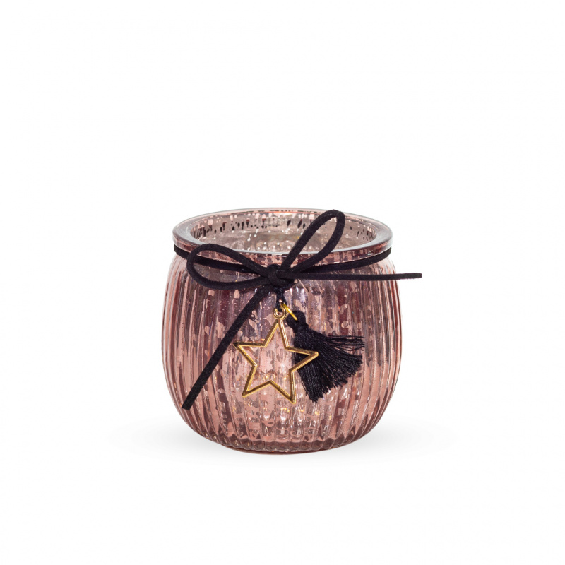 Описание Подсвечник НГ с звездой розовый стекло 7 х 7.5 см