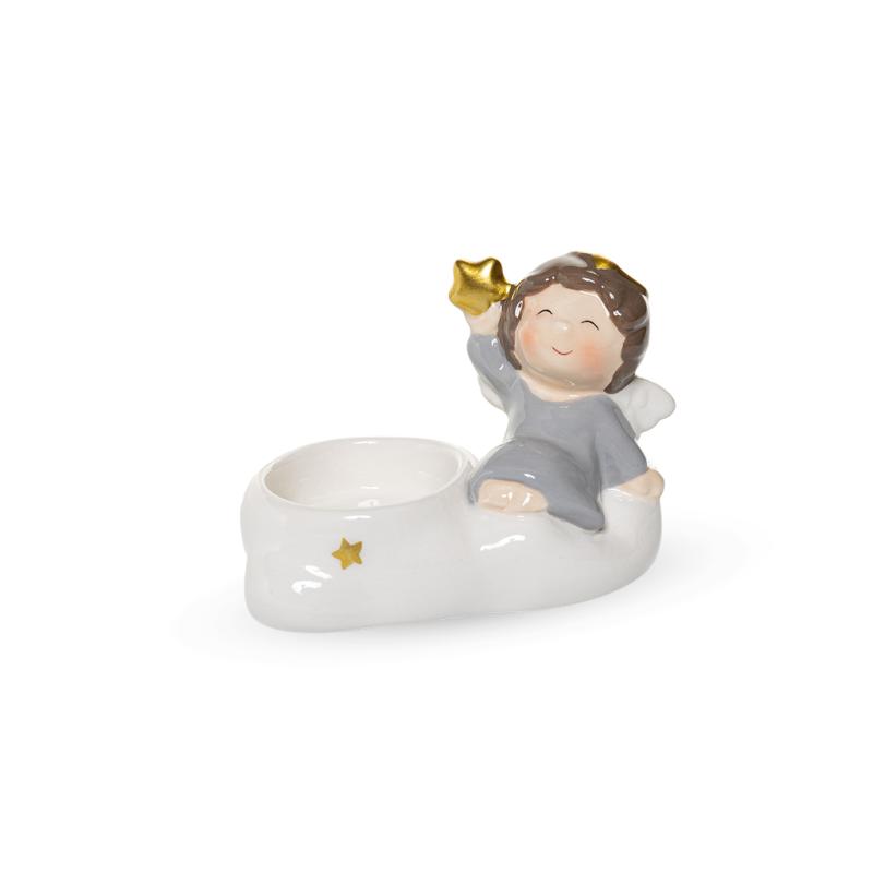 Описание Подсвечник Облачко с ангелом серый 9,7х6,1см