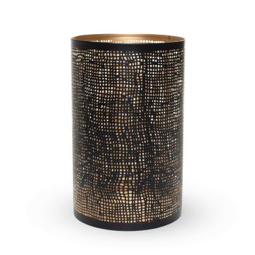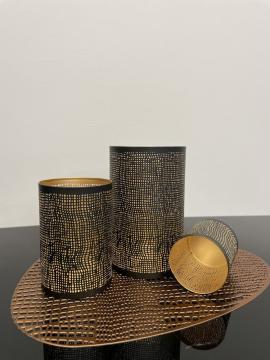 Через ажурный узор подсвечника мягко пропускается пламя свечи. Контрастное сочетание золота и черного цвета задает тон всему пространству. Сгруппируйте подсвечники трех разных размеров в одно целое и наслаждайтесь объемным украшением в интерьере.