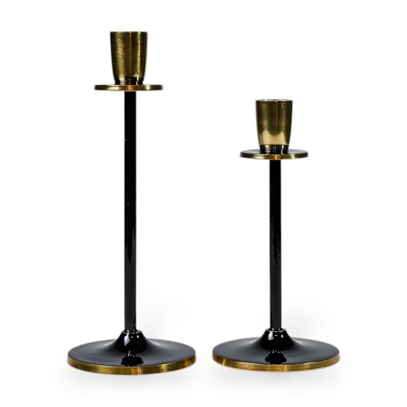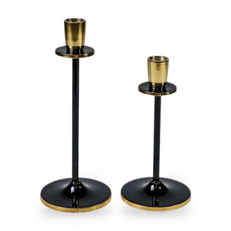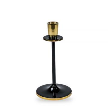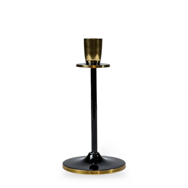 Подсвечник Noir Elegance — воплощение минимализма и сдержанной роскоши. Выполненный из алюминия и покрытый гладкой эмалью глубокого чёрного цвета, подсвечник сочетает в себе прочность и утончённость. Золотистые акценты придают металлическому подсвечнику утончённый контраст и визуальную лёгкость.