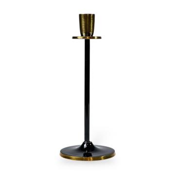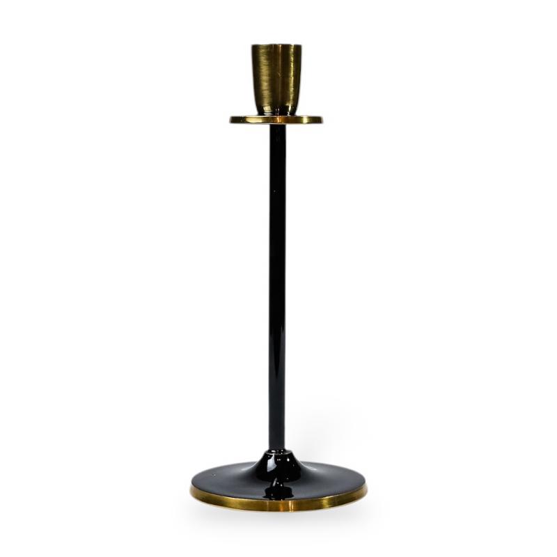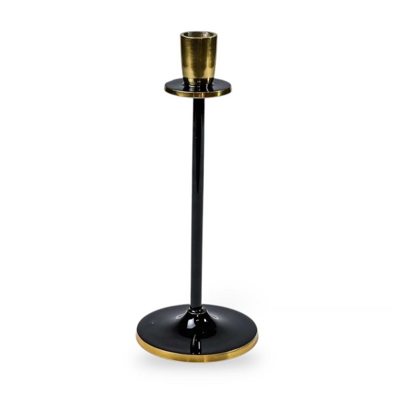 Подсвечник Noir Elegance — воплощение минимализма и сдержанной роскоши. Выполненный из алюминия и покрытый гладкой эмалью глубокого чёрного цвета, подсвечник сочетает в себе прочность и утончённость. Золотистые акценты придают металлическому подсвечнику утончённый контраст и визуальную лёгкость.