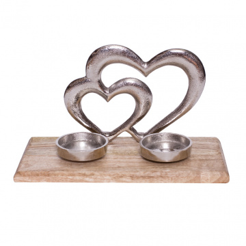 Сколько приятных моментов дарит живое пламя свечи. Подсвечник «Сердца» усиливает романтичное настроение и располагает к чувственной атмосфере. Стилевой декор выполнен в строгом и лаконичном стиле. Подставка из мангового дерева роскошно сочетается с алюминиевыми элементами. Подсвечник «Сердца» служит ярким акцентом в украшении семейного интерьера. Аксессуар смягчает обстановку в гостиной или спальне на журнальном столике. Коллекция декоративных подсвечников из металла представлена в богатом ассортименте. Высокое качество материалов обеспечивает комфорт и долгосрочное использование. Романтичные подарки для супруги – залог счастливой семейной жизни. Проявляйте чувства открыто и без напоминаний. Проводите совместные вечера при свечах.
