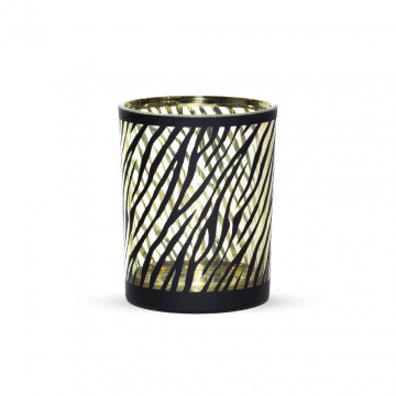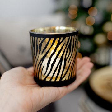 Наводят уют в доме красиво зажженные свечи. Стеклянный подсвечник укроет живое пламя и усилит эффект приятного зрелища. Черно-золотой принт театрально обыграет теневой узор на стене. Тигровый окрас подсвечника созвучен наступающему символу в 2022 году.