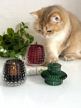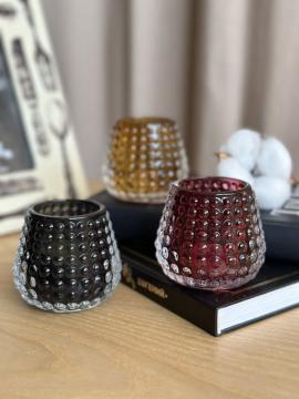 Этот уникальный красный стеклянный подсвечник станет прекрасным дополнением любого интерьера. Его изящная форма и необычная фактурная поверхность придают ему особый шарм. Мягкий свет свечи, проходящий через цветное стекло и рельефные стенки, создает волшебную игру света и тени.