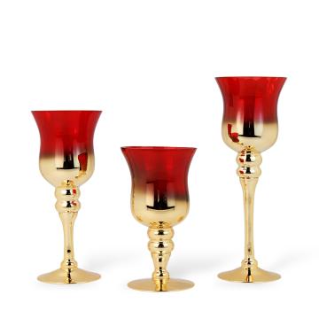 Подсвечник стекло Royal Flame красный с золотом S 20 см