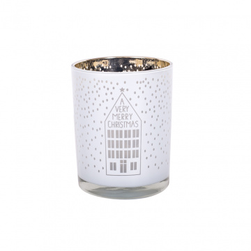 Описание Подсвечник стекло НГ серебристый Домик 12.5см