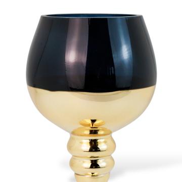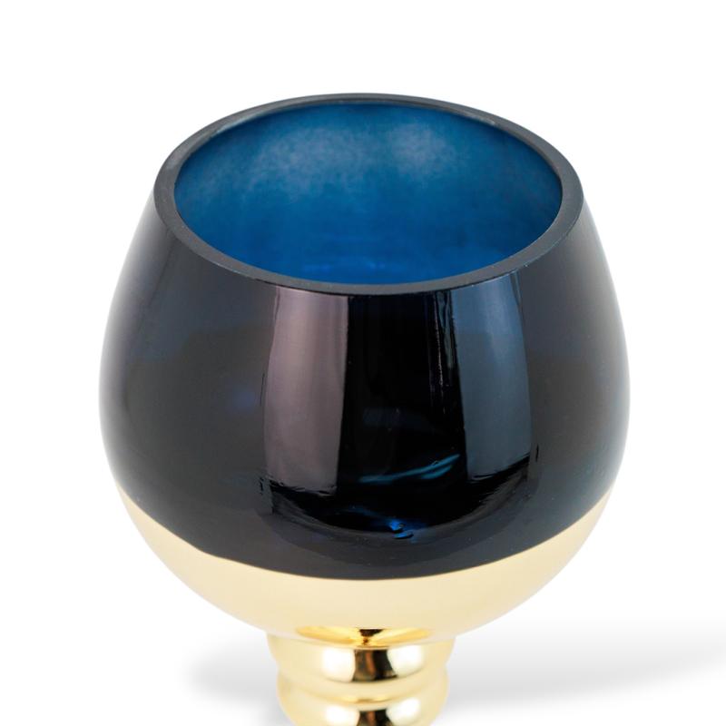 Подсвечник стекло Golden Eclipse синий с золотом S 20 см