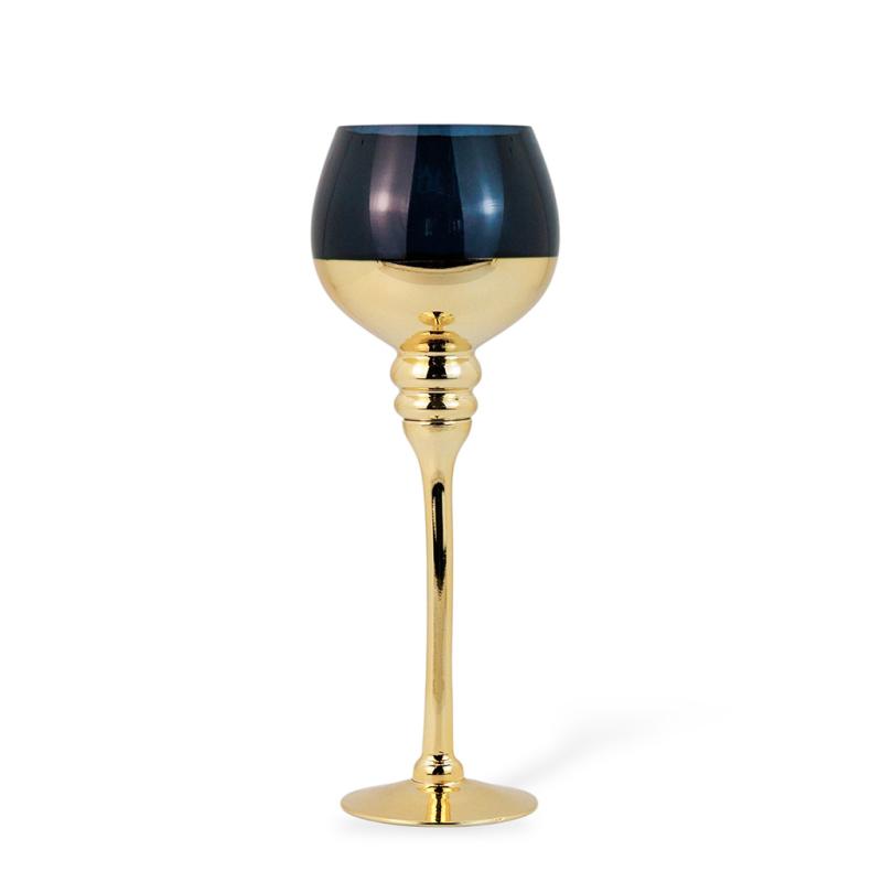 Подсвечник стекло Golden Eclipse синий с золотом М 25 см