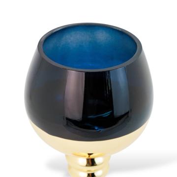 Подсвечник стекло Golden Eclipse синий с золотом М 25 см