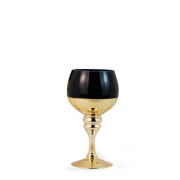 Стеклянный подсвечник в форме бокала из коллекции Golden Eclipse — это гармония мистической глубины синего и сияния благородного золота. Силуэт подсвечника напоминает элегантный кубок, словно вобравший в себя тайну ночного неба и магию солнечного света. Такой подсвечник привносит в интерьер ауру загадочности, утончённости и роскоши, создавая впечатление настоящего произведения искусства.