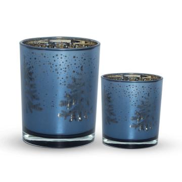 Подсвечник стеклянный Елочка 7,3х8см синий
