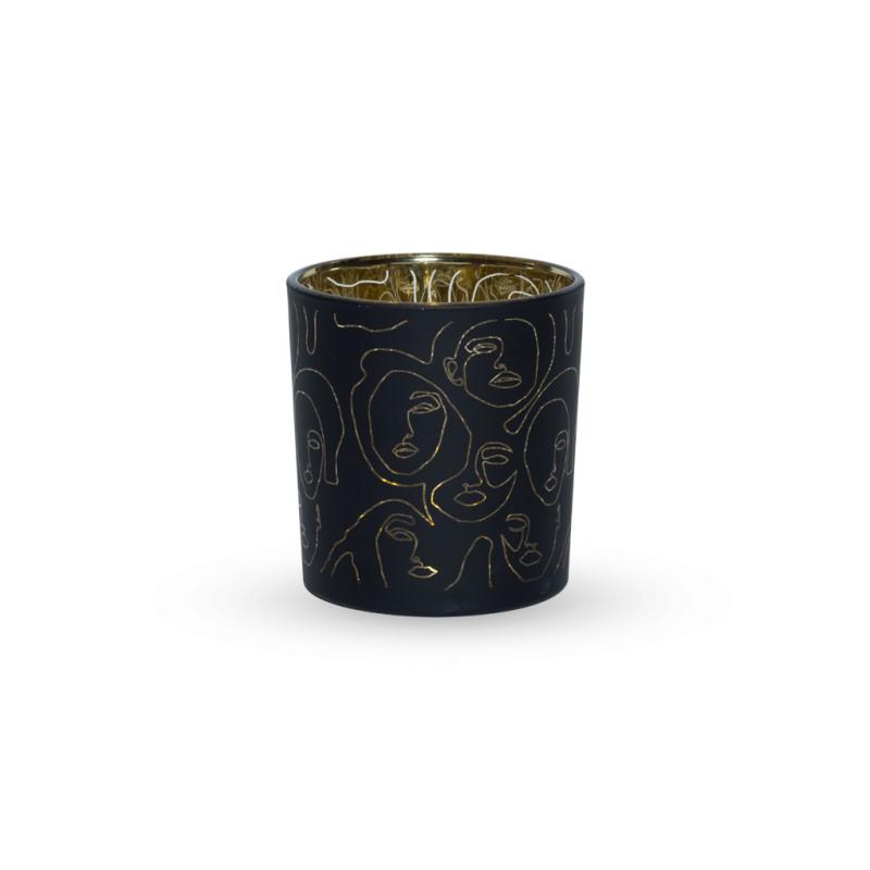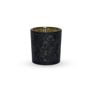 Подсвечник «Faces» предлагает смелый и драматичный взгляд на обустройство уюта. Комбинация черного цвета с золотом добавляет уникальные штрихи в интерьер комнаты. Когда горит свеча, абстрактные лица девушек осветляются и отбрасывают теплые блики. Стеклянный подсвечник элегантно заявит о себе на открытых полках, диванном столике и широких подоконниках. Стильный атрибут настроит атмосферу праздника Хэллоуина, романтичного ужина и стильного мероприятия.