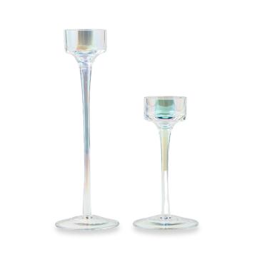 Описание Подсвечник стеклянный с разноцветным отливом 7.5х15cm