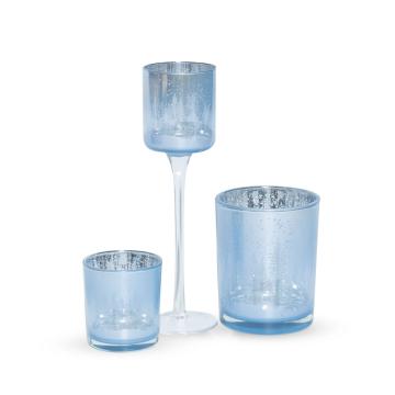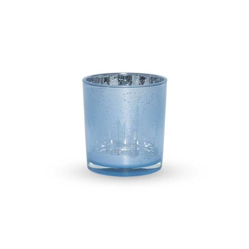 Подсвечник стеклянный Зимний лес 7,3х8см голубой
