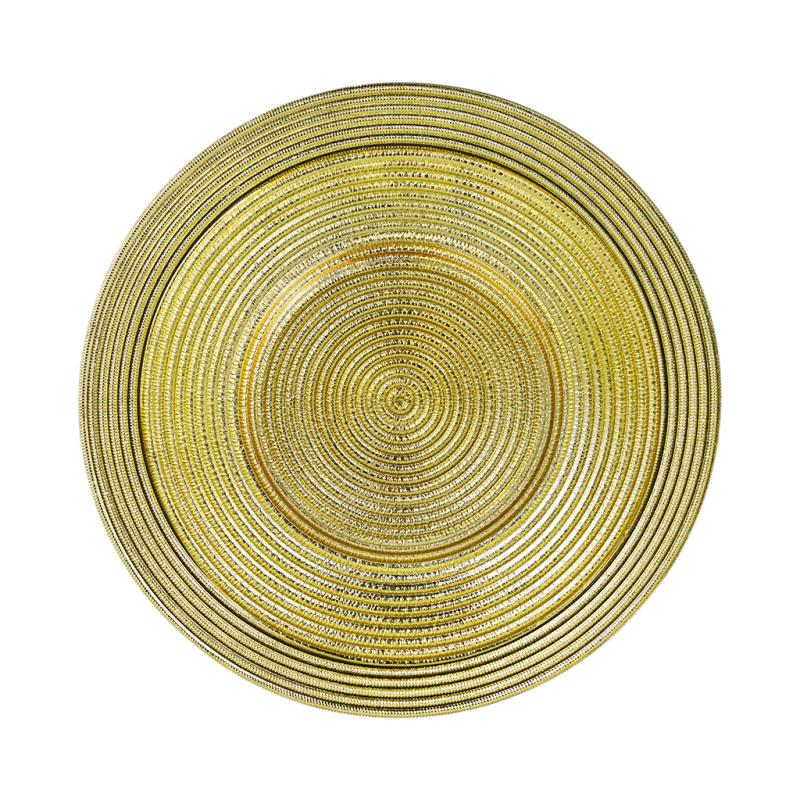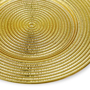 Подчеркните торжественность и изысканность вашей сервировки с подтарельником Golden Spiral. Благородный золотой оттенок подтарельника и рельефный узор в виде концентрических кругов создают эффект сияния и глубины, напоминая роскошное ювелирное украшение.