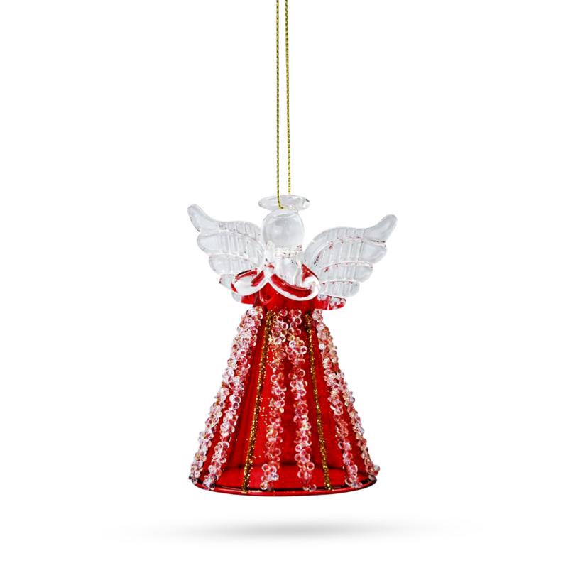 Елочная подвеска Ангел красный — хранитель праздничного света. Ангел словно сошёл с вершины морозного облака — прозрачный, воздушный, с расправленными крыльями и платьем цвета рождественского сияния. Этот ангел не просто украшение — это послание тепла, любви и веры в чудо. Его стеклянная мантия украшена переливами бисера, словно каплями застывшего света, а золотистые линии — как следы добрых звёзд, что ведут к самым заветным мечтам.
