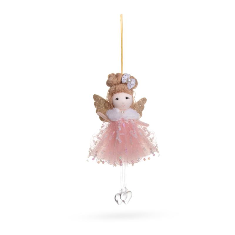 Подвеска Ангелочек с сердцем розовый 18,3 см