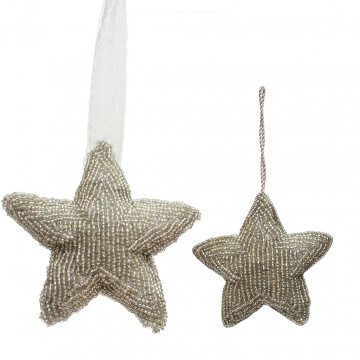Мягкий новогодний декор наполняет дом умиротворением и красотой. Подвеска «Звезда»- прелестный способ добавить задушевности праздничному интерьеру. Холодный оттенок цвета серебра добавляет свежести в обстановку комнаты. Мерцающая «Звезда» из бисера выглядит волшебно на фоне гирлянд и стеклянных игрушек. Используйте декор для украшения елки, входной двери, карниза или каминной полки. Фактурная подвеска на ленточке придется по душе детям и взрослым. Подвески из бисера «Звезды» выделяются модной цветовой гаммой: серебро, золото, голубой, персиковый. Элементы ручной работы выполнены на высоком уровне и создают благоприятное впечатление о качестве изделия. Дарите новогодние подарки с любовью и трепетом к близким людям. Проявите сердечное внимание к вашим коллегам и друзьям. Подвеска «Звезда» - универсальный аксессуар для новогоднего украшения дома.