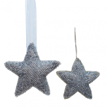 Описание Подвеска из бисера Звезда серо-голубая 10х4 см