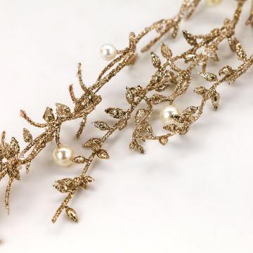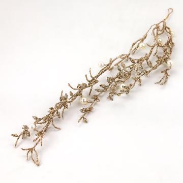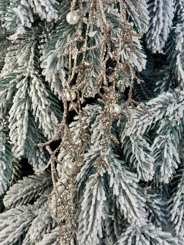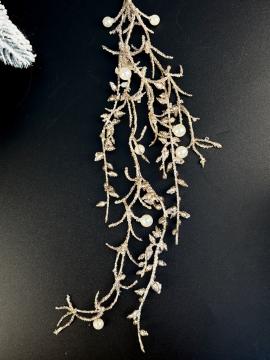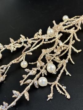 Описание Подвеска на елку Ветка с кристаллами и жемчужинами золото 44см