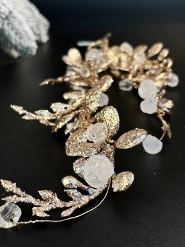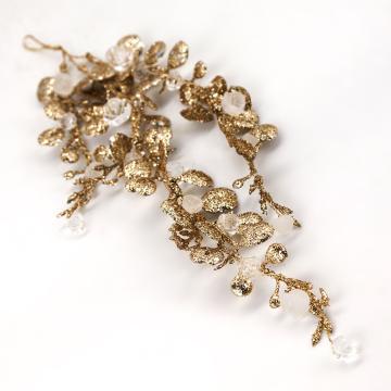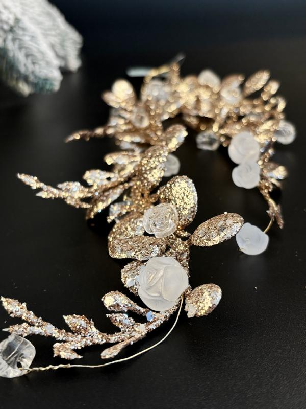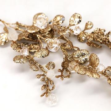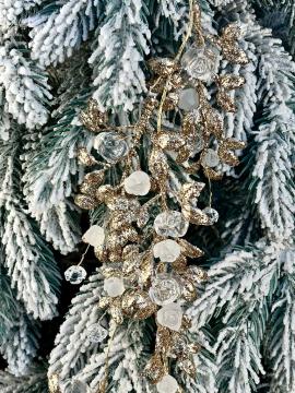 Описание Подвеска на елку Ветка с цветами и кристаллами золото 40см