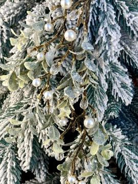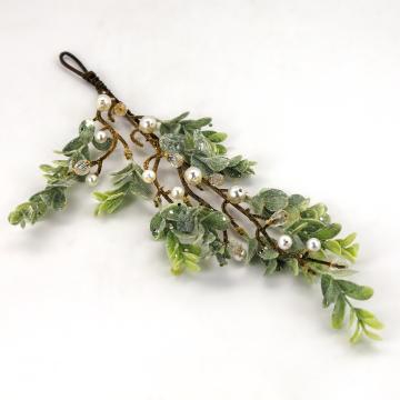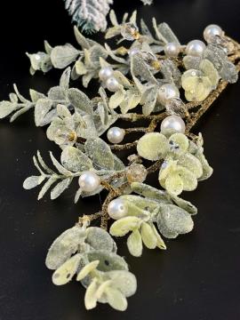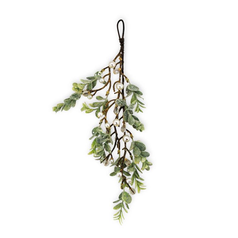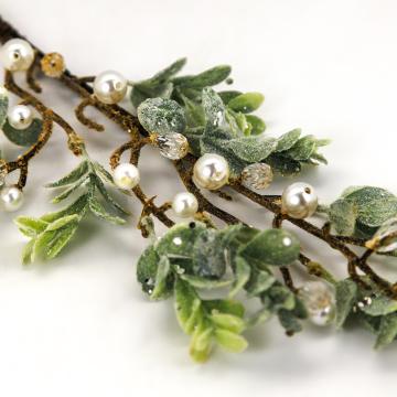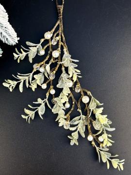 Описание Подвеска на елку Ветка зеленая с кристаллами и жемчужинами 37см