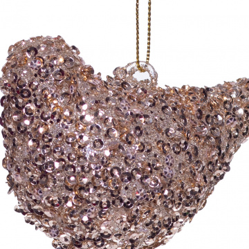 Елочная игрушка Птичка с пайетками серебристая 15 см
