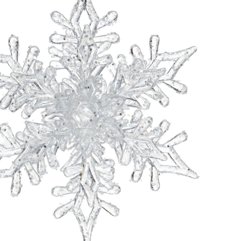 Описание Подвеска снежинка глиттер серебро 11см 3D