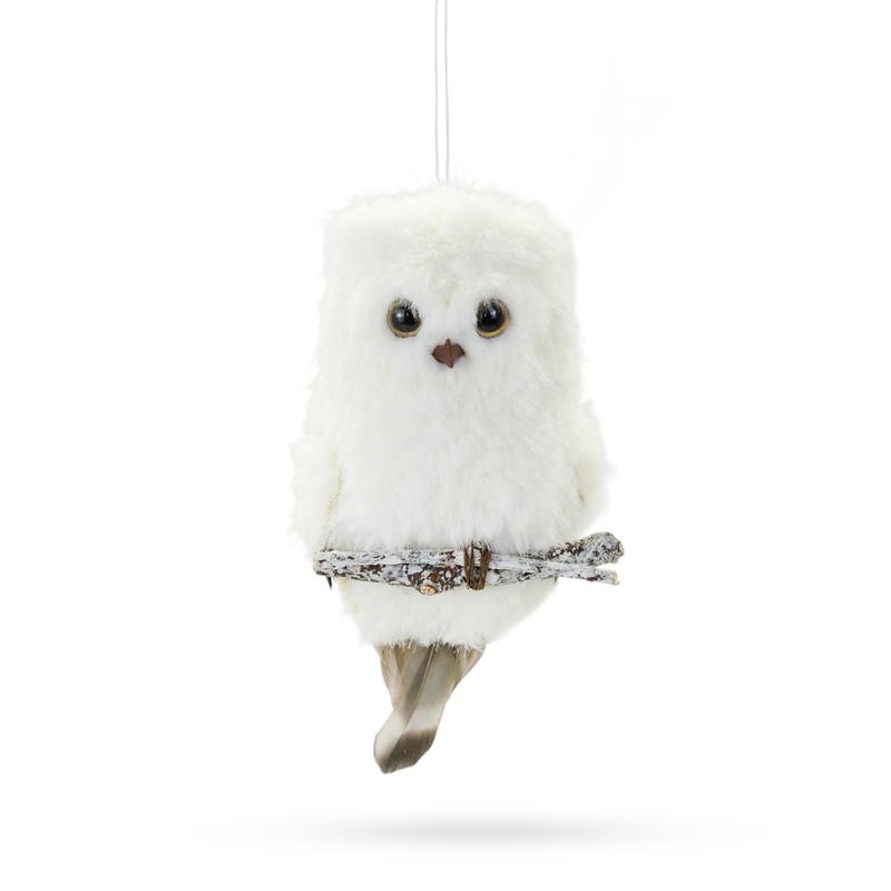 Описание Подвеска Сова на ветке белая 15 см