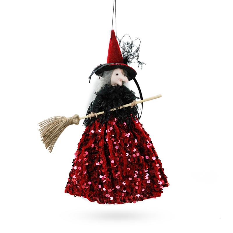 Создайте атмосферу таинственной магии в своём доме — подвеска «Ведьма с метлой в красном платье» станет центральным элементом хэллоуинского декора и подарит празднику особое настроение.