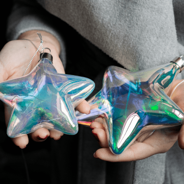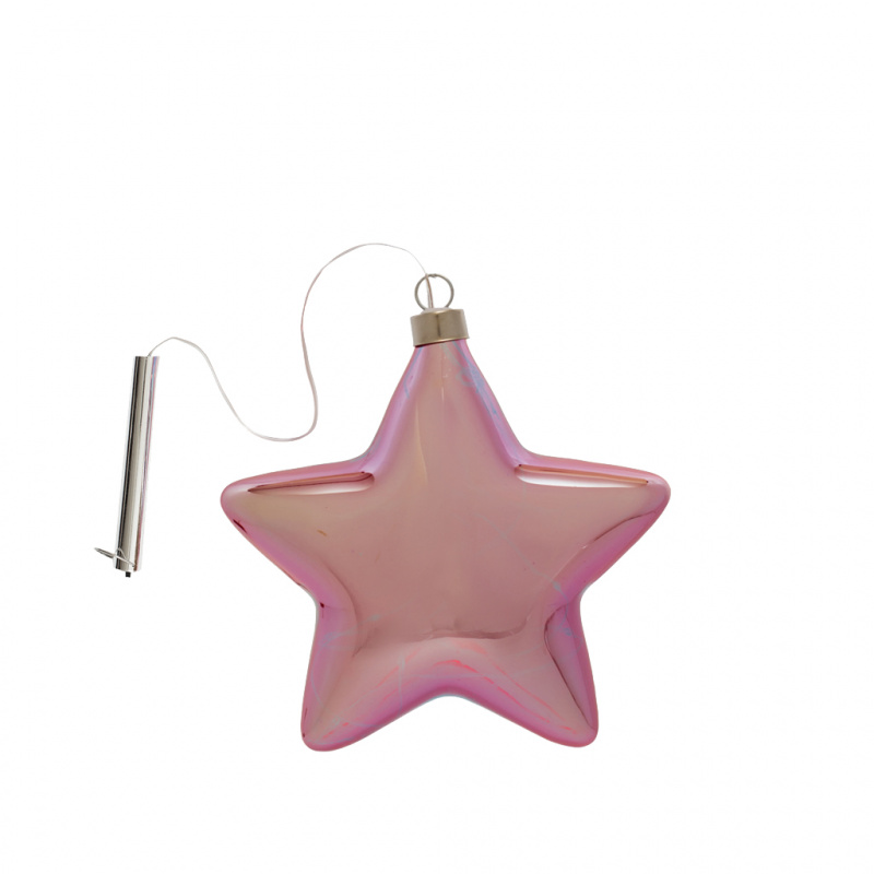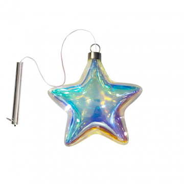 Декоративный Led светильник в форме Звезды, из дутого стекла, радужного цвета, 16 см. Источник питания - 2АА батарейки (не входят в комплект). Декоративный Led светильник в форме Звезды, может стать оригинальным украшением для детских комнат, игровых зон и праздников. Светильник выглядит одинаково привлекательно когда включен и без включенной подсветки. Во включенном состоянии оттенок стекла слегка изменяется, становится ярче и может служить декоративным ночником. Коллекция представлена в различной цветовой гамме и нескольких формах, а именно луна, звезда и воздушный шар. Светильник легкий и изящный по виду, является достаточно прочным при эксплуатации. Комбинируя различные цвета, формы и размеры вы создадите свой оригинальный дизайн в помещении.