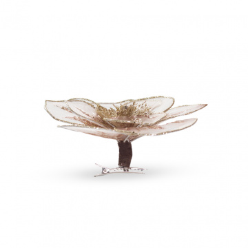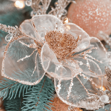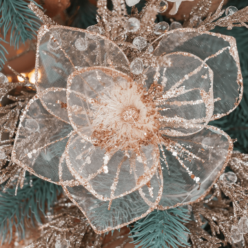 Светится нежностью зимний цветок на ветвях ели. Тонкие лепестки с золотыми бликами радуют взгляд. Цветок клипса из органзы несет в себе легкость и воздушность. Декор заметен издалека на витрине магазина, окна ресторана или кафе. Практичное крепление фиксирует декор на экибанах, гирляндах, подарочной упаковке. Модель двухслойного цветка состоит из восьми лепестков. Для эффекта объемности сочетайте модели меньшего и большего размеров. Гибкие лепестки держат форму за счет проволочного каркаса. Цветовая гамма состоит из трендовых вариантов: синий, золотой, серый. Взгляните на украшения для дома свежим взглядом. Пусть сияют на ветвях елки новогодние цветы. Элемент неожиданного подарка к Новому году и Рождеству.
