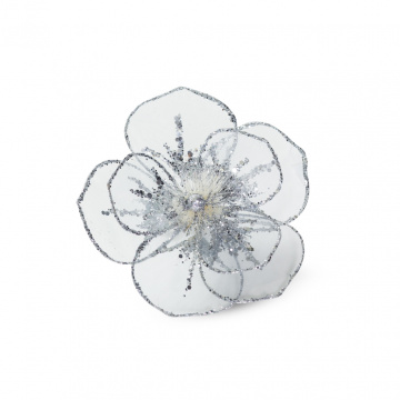 Светится нежностью зимний цветок на ветвях ели. Тонкие лепестки с золотыми бликами радуют взгляд. Цветок клипса из органзы несет в себе легкость и воздушность. Цветы заметны издалека на витрине магазина, окна ресторана или кафе. Практичное крепление фиксирует декор на экибанах, гирляндах, подарочной упаковке. Модель двухслойного цветка состоит из восьми лепестков. Для эффекта объемности сочетайте модели меньшего и большего размеров. Гибкие лепестки держат форму за счет проволочного каркаса. Цветовая гамма состоит из трендовых вариантов: синий, золотой, серый. Взгляните на декор для дома свежим взглядом. Пусть сияют на ветвях елки новогодние цветы. Элемент неожиданного подарка к Новому году и Рождеству.