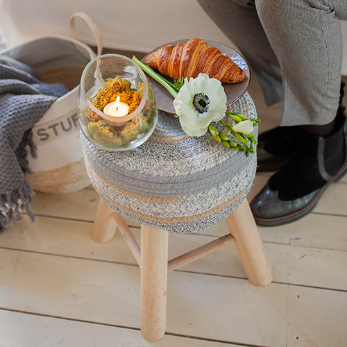 В моду вернулись оригинальность и колорит ручной работы. Плетеный пуфик станет важной частью современного интерьера. Серый чехол из натуральных нитей добавляет тепло и красоту в обстановку комнаты. Сплошное удовольствие поставить пуфик на террасу, летний балкон или детскую комнату. Уютно присесть на низкий стульчик ребенку, чтобы поиграть вдоволь с любимыми игрушками. Отличная идея использовать пуфик как подставку для цветочных вазонов. Желательно группировать 2 или 3 изделия в одну композицию. Плетеный пуфик в интерьере - прекрасный элемент декора на каждый день с полезными функциями. Чехол из поликоттона обладает износостойкими и практичными преимуществами. Изделие удобно снимать и стирать в деликатном режиме. Ножки пуфа изготовлены из легкого и прочного массива дерева. Коллекция плетеного текстиля в одном стиле состоит из декоративных чехлов на подушки, летних сумок и пуфиков. Импровизируйте с новой коллекцией домашней мебели. Жизнь разнообразна во многих деталях. Создайте свой уголок домашнего уюта с плет