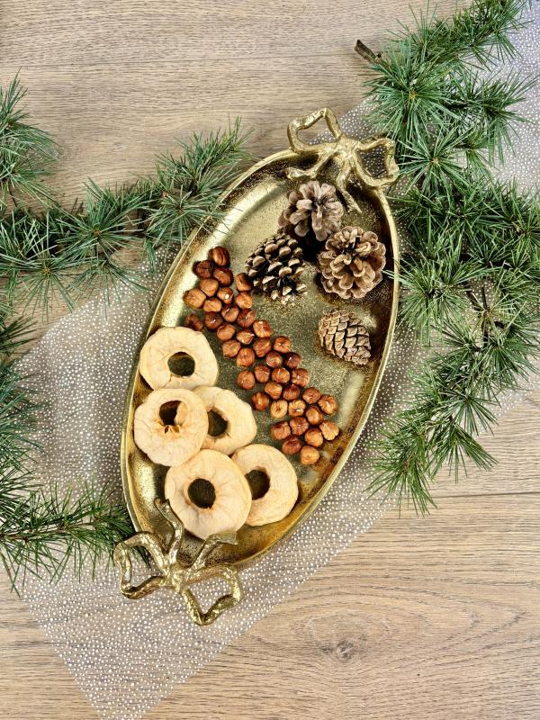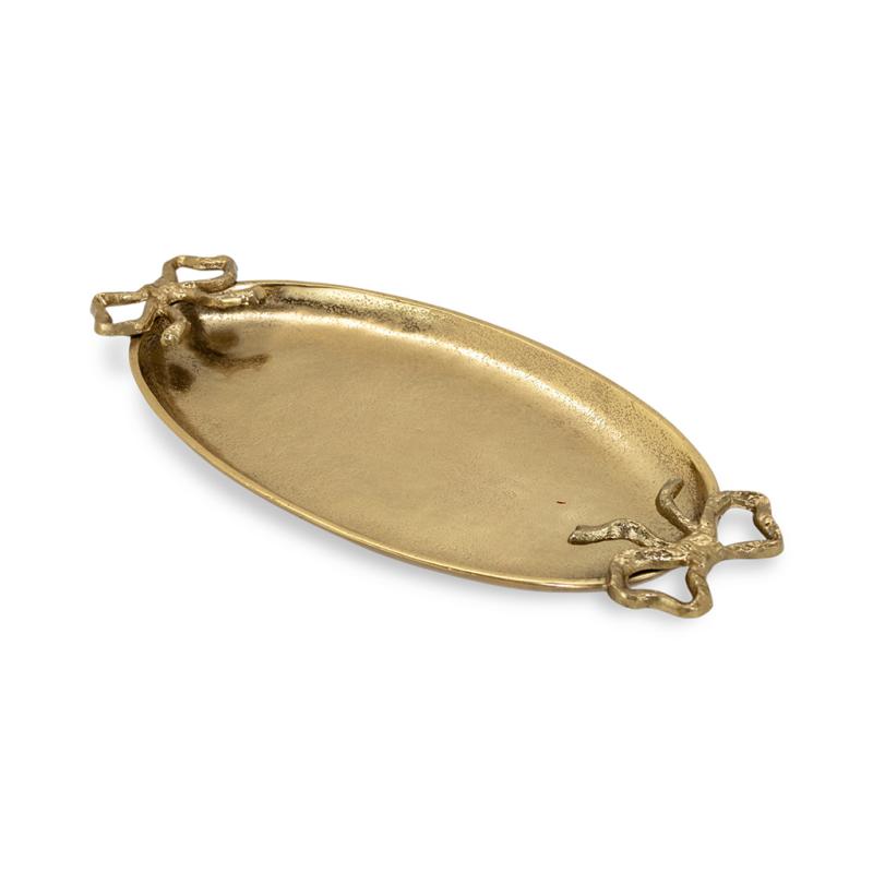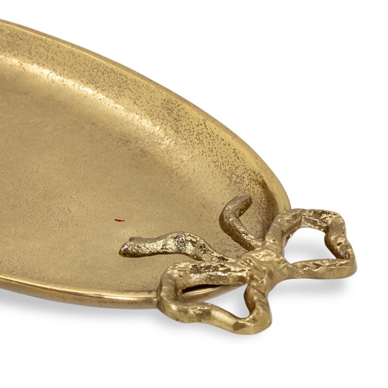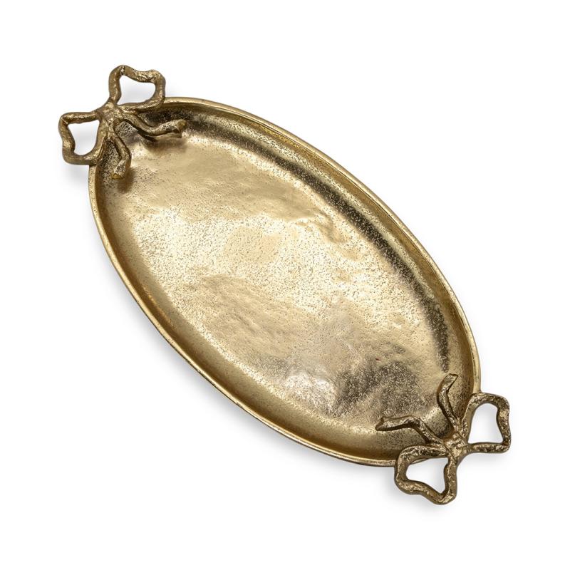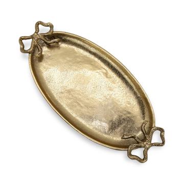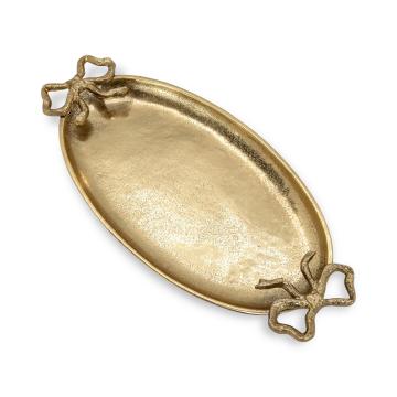 Описание Разнос овальный алюминиевый Бантики золото 40 см