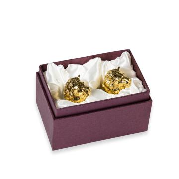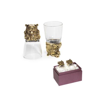 Парные рюмки «Лев» - изделия для ярких и харизматичных мужчин. Алкогольный напиток из статусной посуды обретает вкус победы, азарта и энергии. Позолоченное изголовье животного напоминает о старинных кубках для вина. Отлитое изголовье льва хранит устойчивость в перевернутом положении. Декоративный стиль рюмок привлекателен для интерьера мужского кабинета, офиса, гостиной.