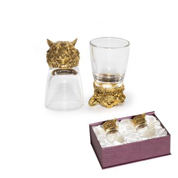 Комплект рюмок «Тигр» - тот самый подарок, который мужчина будет с наслаждением использовать часто. Позолоченная голова животного напоминает о кубках средних веков. Изделие с дизайном и стилем задает тон любому празднику или холостяцким посиделкам. Отлитое изголовье тигра хранит устойчивость в перевернутом положении. Декоративный стиль рюмок привлекателен для интерьера мужского кабинета, офиса, гостиной.