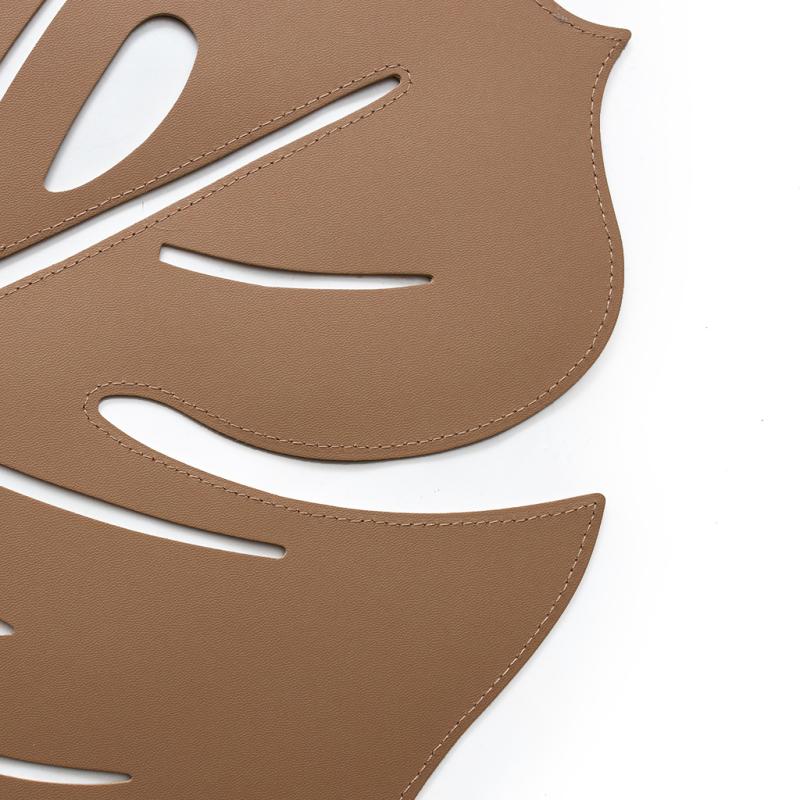 Уникальная салфетка под тарелку выполнена в форме листа Монстеры и станет ярким акцентом на вашем столе. Двухсторонняя и фигурная, она добавит изысканности и стиля любому застолью. Изготовленная из искусственной кожи, сочетает в себе практичность и элегантность. Светло-коричневый цвет, напоминающий кофе с молоком, придаст вашему столу теплоты и уюта. Простая в уходе, салфетка легко очищается с помощью влажной губки.