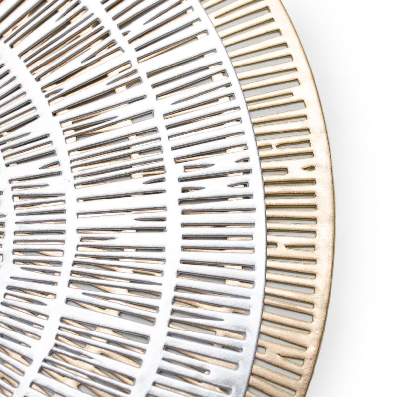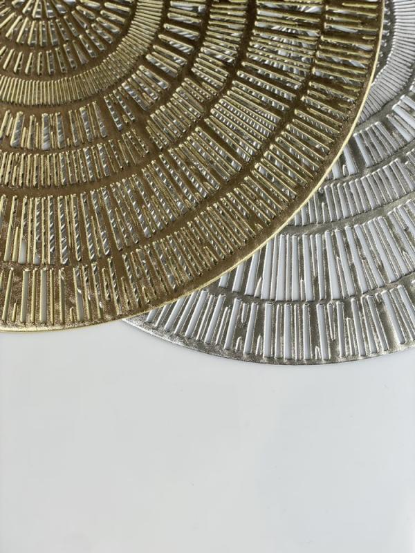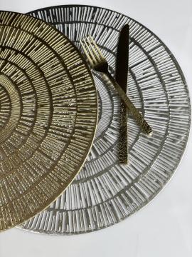 Ищете способ добавить нотку элегантности и изысканности вашей сервировке? Тогда вам нужна серебристая круглая циновка под тарелку! Эта изысканная циновка из ПВХ с резным этническим узором станет идеальным дополнением к любому столу.