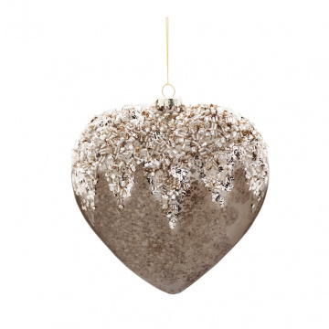 Обилием блесток играет наряд пышной елки. Новогодняя игрушка «Сердце» - верх роскоши праздничного украшения. Цвет бронзы с отливом серебра дает эффект антикварного предмета. Стеклярус, бисер и золото покрывают изделие густым слоем. «Сердце» на нижних ветвях ели удерживает на себе зрительное внимание. Новогодняя игрушка органично впишется в красоту магазинных витрин, ярких окон и праздничных мероприятий. Серия игрушек цвета бронзы выдержана в одном благородном стиле. Модели «Сердце», «Желудь» и «Шишка» создают органичное трио новогоднего украшения. Почувствуйте, как звучит роскошь в деталях интерьера. Остановите выбор на «Сердце» цвета бронзы. Украшение вызывает чувство белой зависти и восторга.