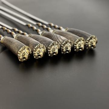 Описание Шампура с декоративной ручкой Лев в буковом кейсе 6 шт