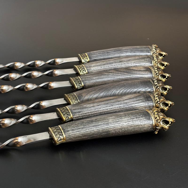 Шампура с декоративной ручкой Волк в буковом кейсе 6 шт