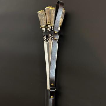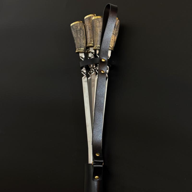 Описание Шампура с декоративной ручкой Тризуб в кожаном чехле 6 шт