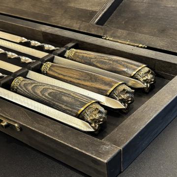 Шампура с декоративной ручкой Лев в буковом кейсе 6 шт