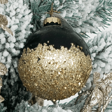Описание Шар Черный с золотым низом стекло 8 см