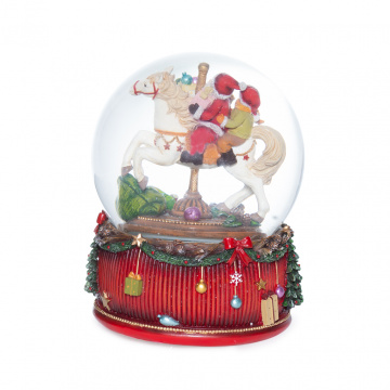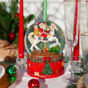 Плавно кружится новогодняя карусель под мелодии Рождества. Нажмите на кнопку, чтобы Санта Клаус переключил внимание на волшебство. Эффект живого зрелища захватывает дух у взрослых и детей. Дизайн снежного шара достаточно яркий и праздничный для новогоднего интерьера. Элемент декора усиливает атмосферу Рождества, семейных праздников и душевных встреч. Традиционно шар ставят на подоконник, каминную полку, или праздничную зону с елкой.