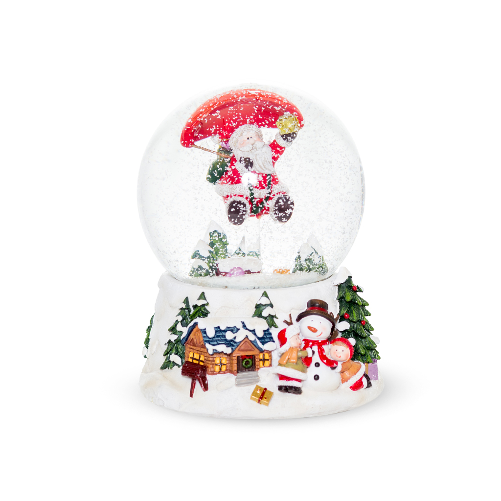 Что мы ожидаем на Новый год? Санта Клауса с парашютом бросает вызов серым будням. Миниатюрная сценка с неподдельными эмоциями детей отточена до совершенства. Лица, движения, одежда – все проработано с вниманием к деталям, которые приятно рассматривать. Новогодняя сценка оживает, как только зазвучит рождественская мелодия и вскружится снег. Декоративный аксессуар в интерьере гостиной, спальни, кабинета легко находит себе место. Снежный шар наполняет атмосферу чувством доброго праздника. Коллекция снежных шаров радует интересным выбором. Оригинально смотрятся модели больших и малых размеров. Качественный материал полирезин и утолщенное стекло обладают практичными свойствами. Аксессуар работает от механического подзавода. Сохраните в сердце веру в волшебство. Станьте на мгновение счастливым как ребенок в Новый год. Снежный шар - подарок с гарантией ярких впечатлений.