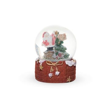 Снежный шар музыкальный 100мм Санта на корзине