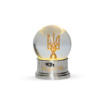 Снежный шар с подсветкой 65мм Тризуб серебро