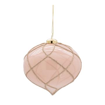 Описание Шар стекло пудренный луковица с золотым плетением 10 см